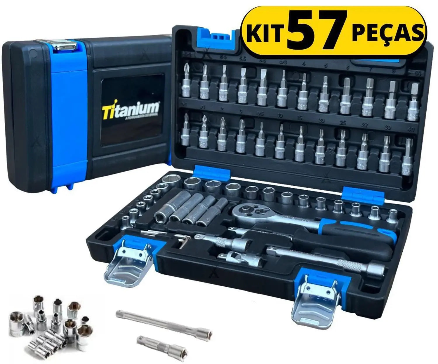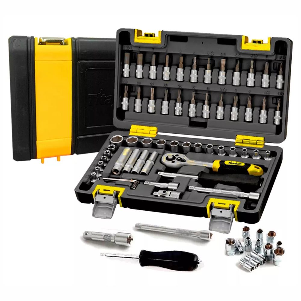 Jogo de Ferramentas com 57 Peças 1/4 Cromo Titanium