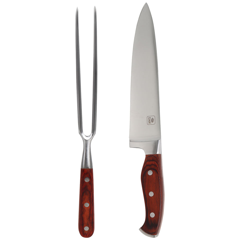 Conjunto de Faca 8" e Garfo em Aço Inoxidável e Cabo em Madeira Bel
