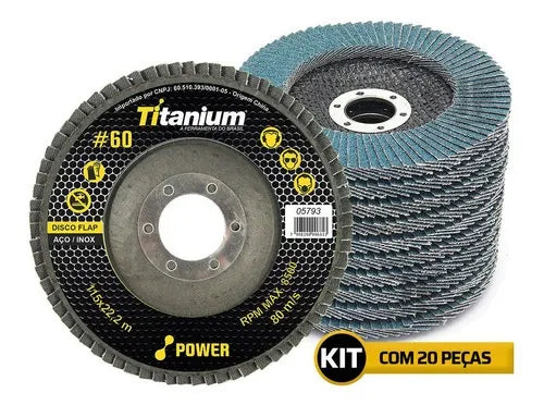 Kit com 20 Discos Flap 4 1/2x7/8 60 Graos - Titanium