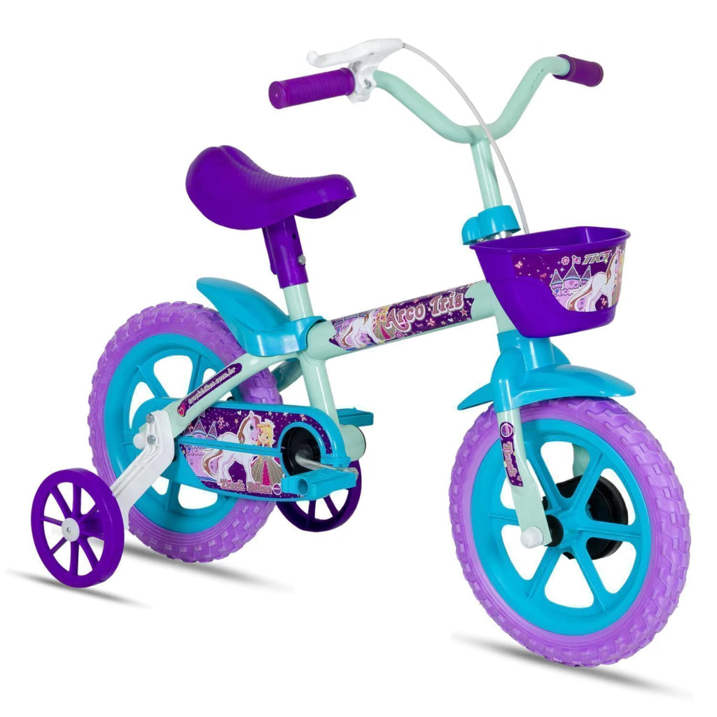 Bicicleta Aro 12 Infantil Track Arco Íris Menta com Azul