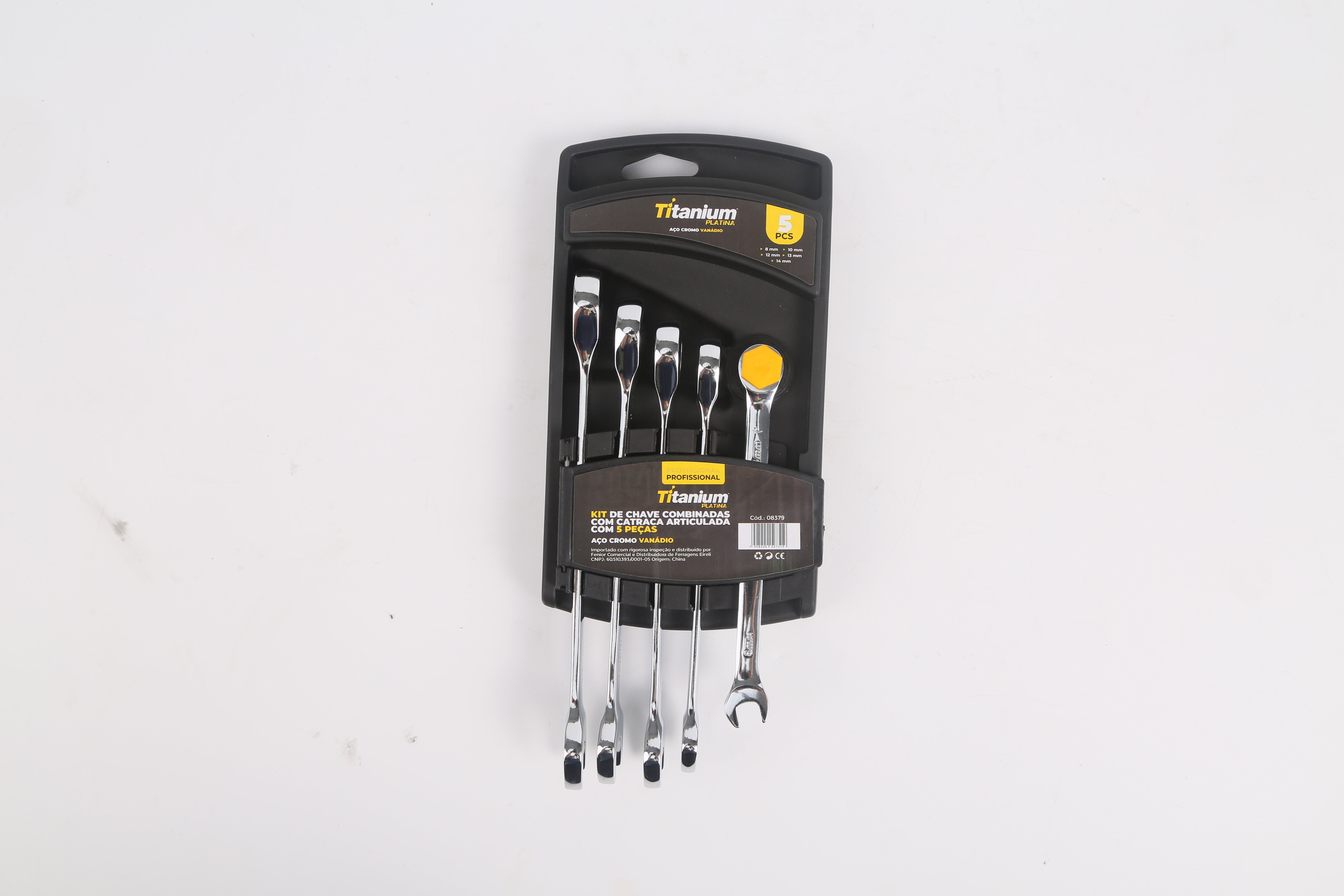 KIT CHAVE COMBINADAS CATRACA ARTICULADA 5 PCS 08379 TITANIUM