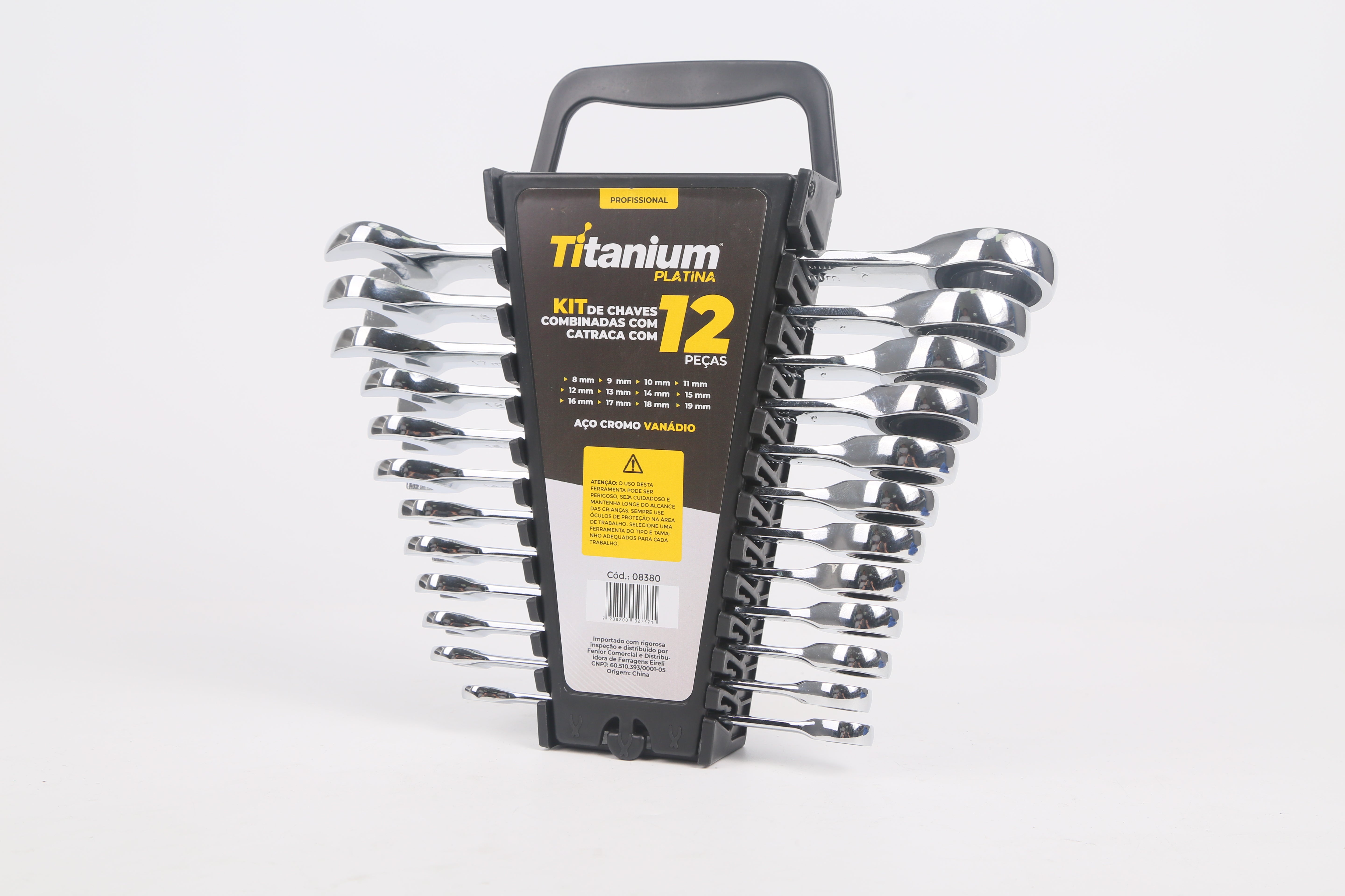 KIT CHAVE COMBINADA CATRACA 12 PCS 08380 TITANIUM