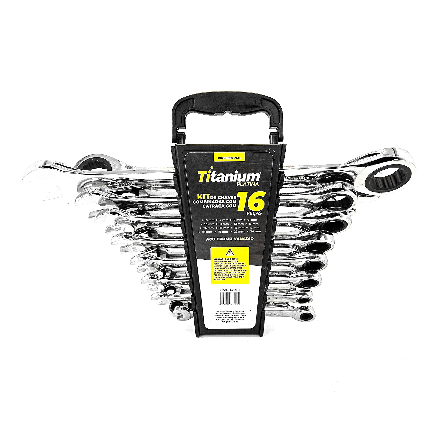 Kit Chave Combinadas com Catraca 16 Peças 08381 - Titanium