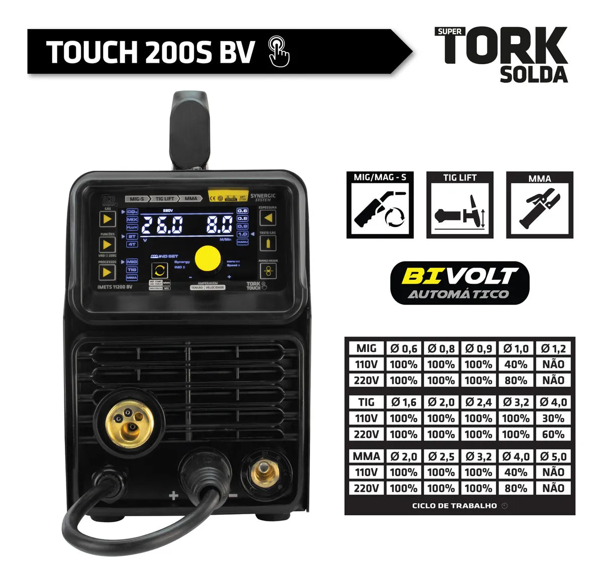 INVERSOR 200 AMPERES (MIG/MMA/TIG) - BV IMETS-11200-BV TORK