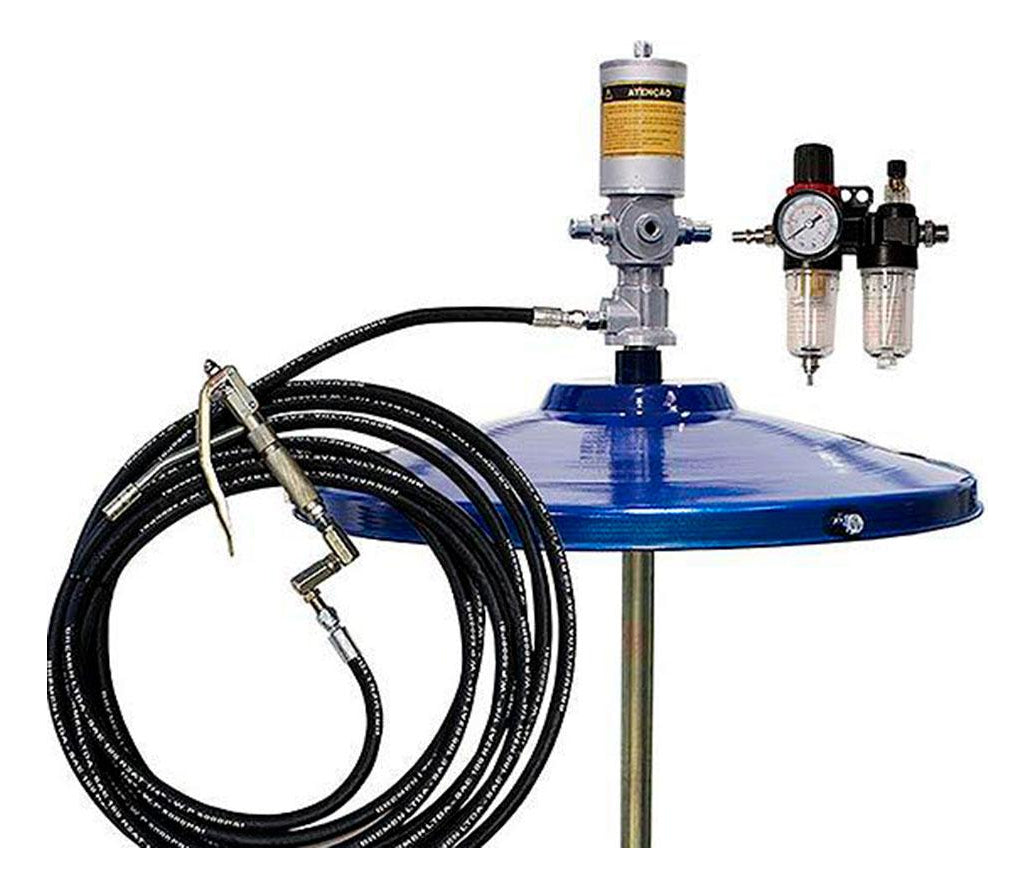O Kit Propulsora para Graxa Bremen é ideal para lubrificação e utilização em indústrias, fazendas, oficinas e outros locais ou em equipamentos que demandem alto volume de lubrificação. O equipamento oferece excelente desempenho e durabilidade, fornecendo uma pressão 50 vezes maior que a pressão de entrada (relação 50:1). Com uma operação simples e prática, a graxa é transferida por meio de uma haste pescadora acionada conforme a pressão liberada pelo gatilho. O kit suporta fluídos com viscosidade na escala de 1 a 5, conforme a tabela NLGI, garantindo eficiência e versatilidade no trabalho.