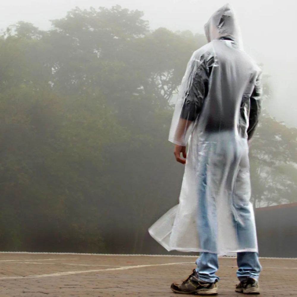 Capa de Chuva Transparente Pvc Laminado 0,13mm Com Capuz Impermeável Brascamp