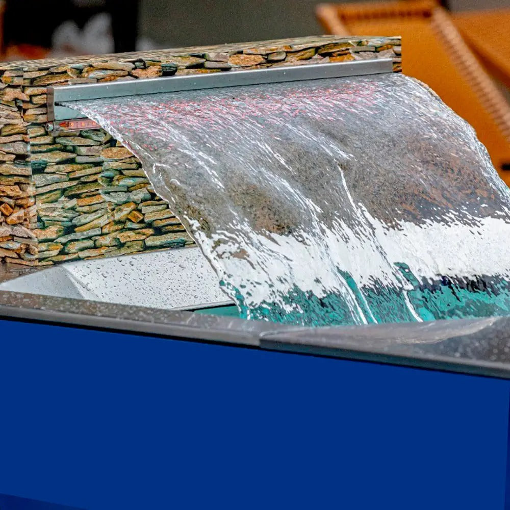 Cascata de Embutir para Piscina 60 CM BORTONIO. O design contemporâneo da Cascata para Piscina é moldada em aço inox, o que garante maior durabilidade e beleza.