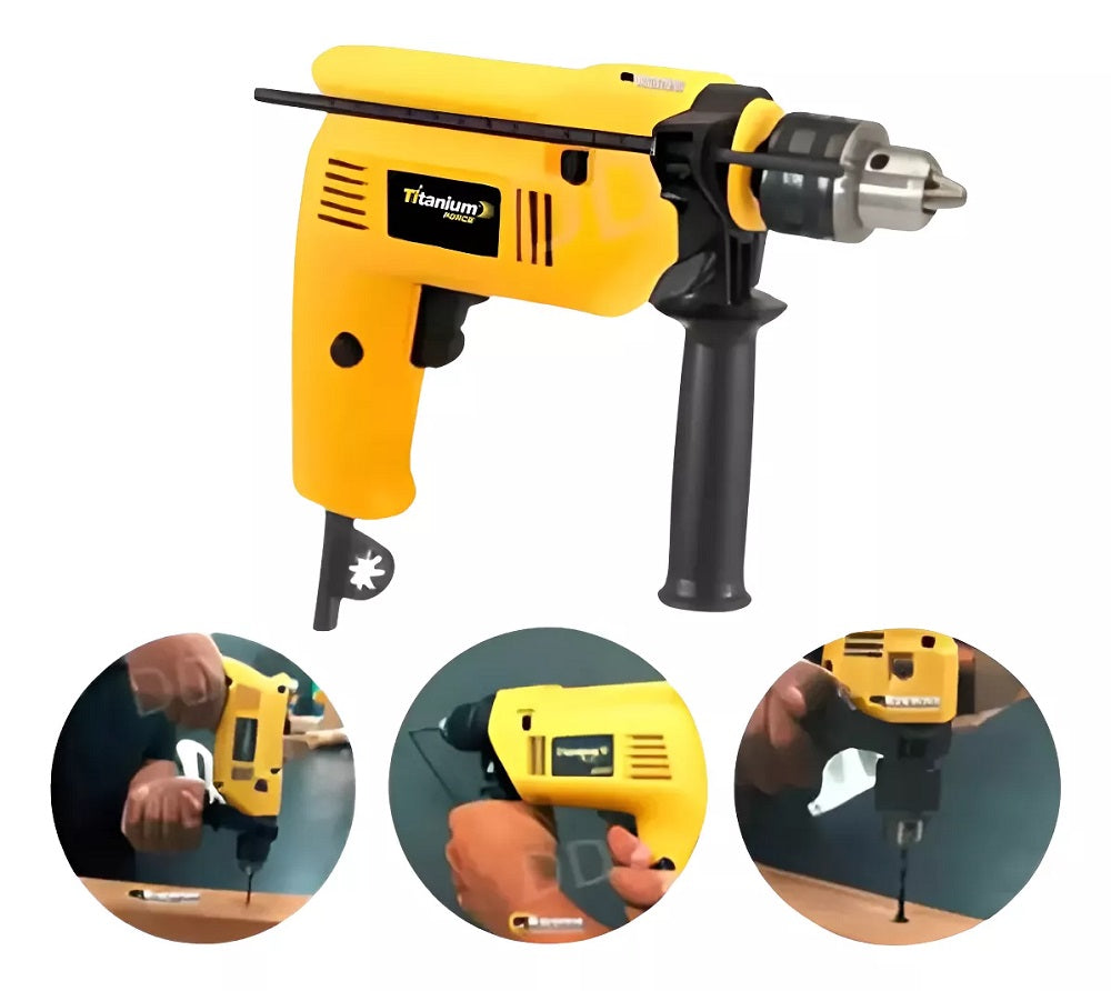 A FURADEIRA DE IMPACTO 3/8 POLEGADAS 220V 500W da Titanium é uma ferramenta poderosa e versátil, ideal para realizar diversas tarefas de perfuração em diferentes materiais, como madeira, metal e alvenaria.
