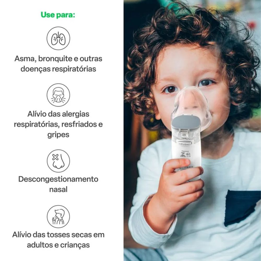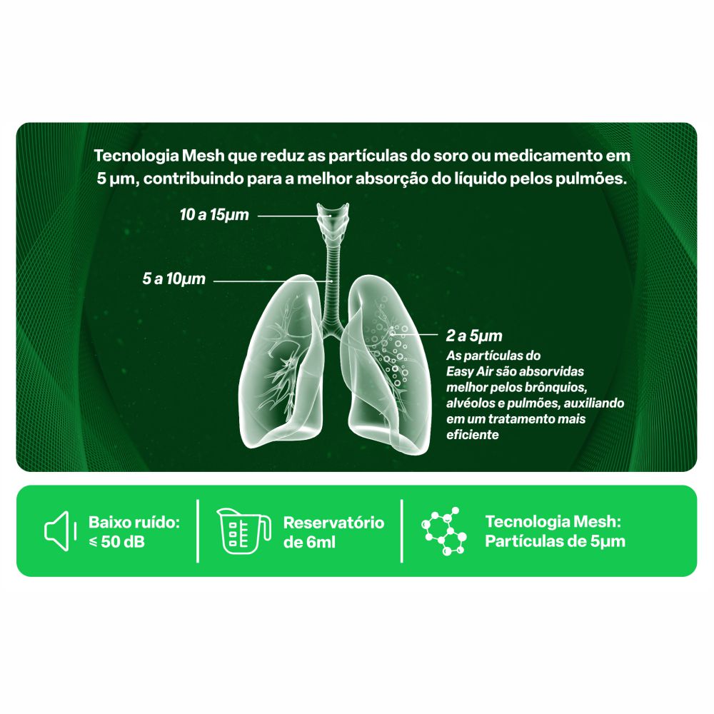 - Tecnologia Mesh que garante melhor absorção do soro ou medicamento pelos pulmões: partículas de 5 µm.