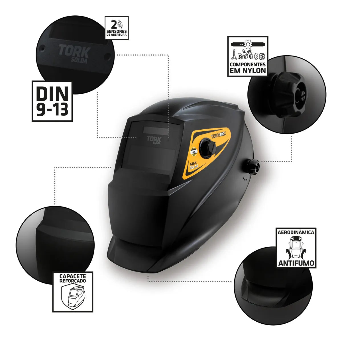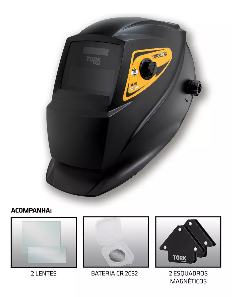 KIT MÁSCARA 4K TORK SOLDA ESCURECIMENTO AUTOMÁTICO MAK-SOLAR + 2 ESQUADROS TORK SOLDA 12 KG