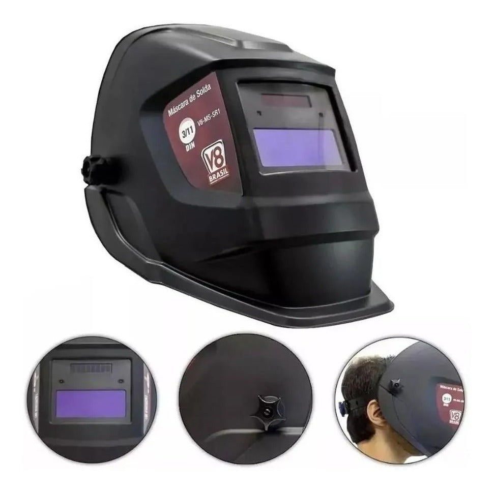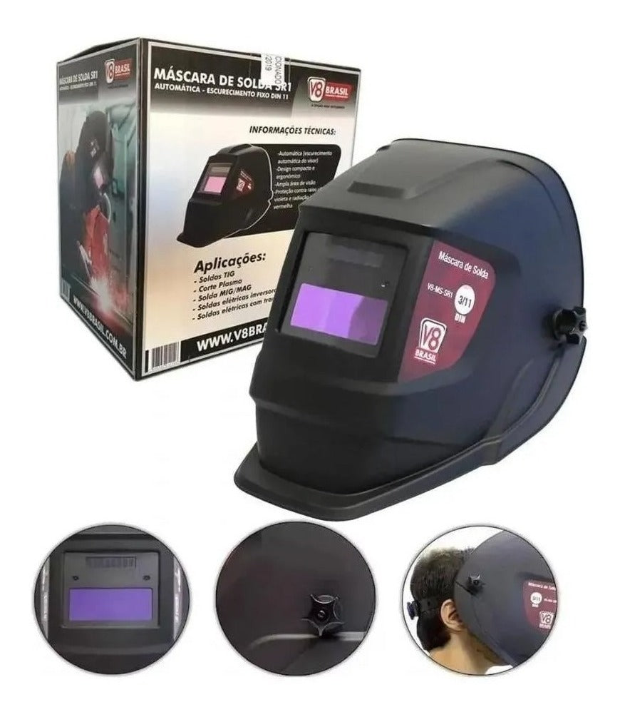 Máscara de solda sem regulagem é projetada para proteger os olhos e o rosto contra faíscas, raios ultravioleta e infravermelho, sob condições normais de solda. O filtro de escurecimento muda automaticamente do estado claro para escuro quando ocorre a solda e retorna para o estado inicial quando a solda é finalizada. O tempo que leva para trocar do escuro para o claro é de aproximadamente 0,4 segundos. A máscara de solda já vem pronta para o uso, devendo apenas regular a cinta de ajuste da cabeça. Indicada pra solda MIG/MAG e elétrica.