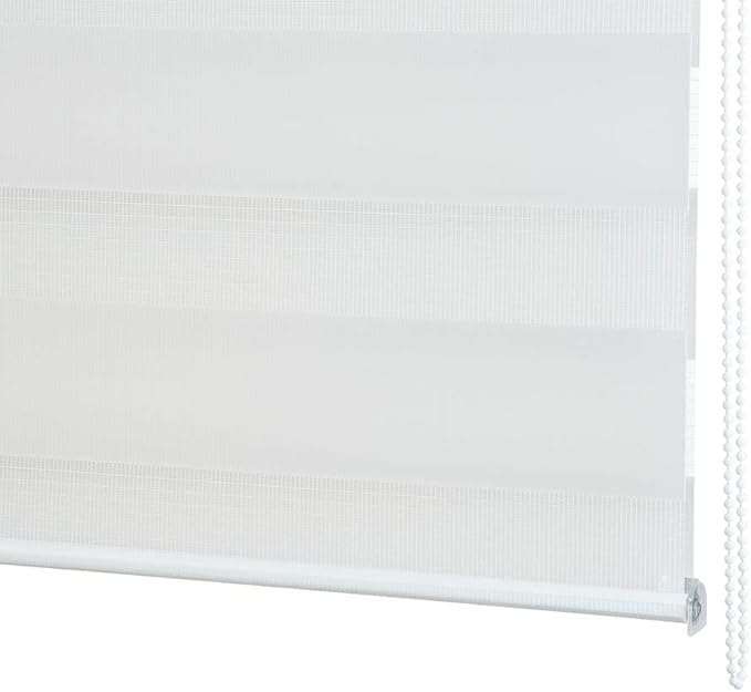 O tecido duplo permite o ajuste das faixas opacas para fornecer privacidade e escurecer o ambiente ou das faixas transparentes para permitir a passagem da luz.