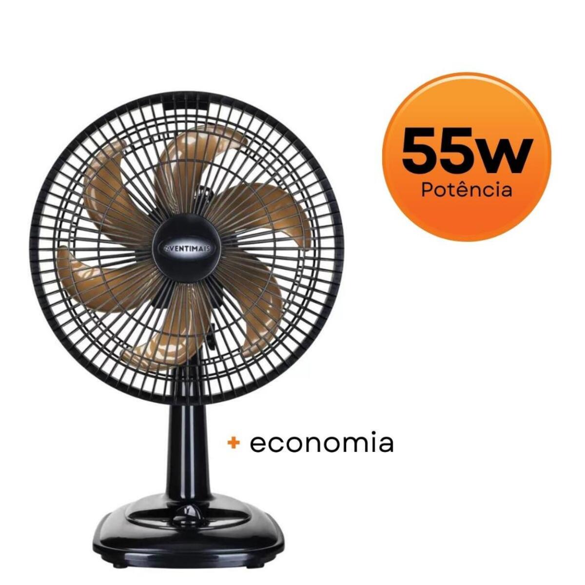1 Ventilador Oscilante de Mesa 55W Ventimais 30CM Turbo Preto/Bronze 127v